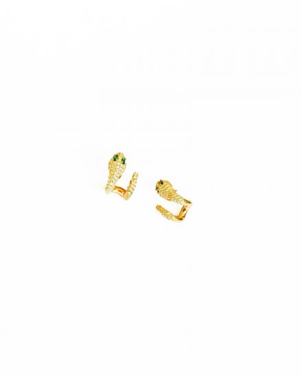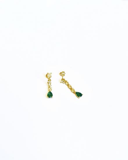Zümrüt Tek Taş Gümüş Küpe - Gold Renk
