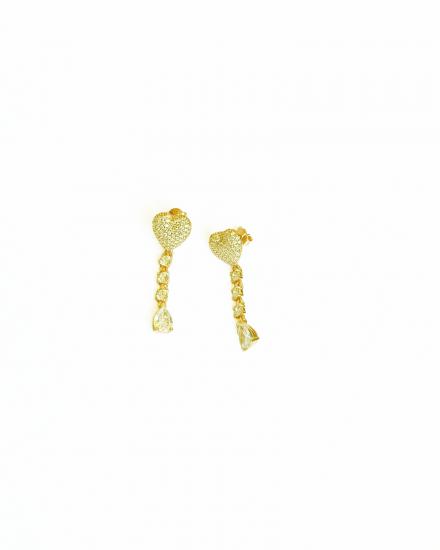 Beyaz Taşlı Kalp Desenli Gümüş Küpe - Gold Renk