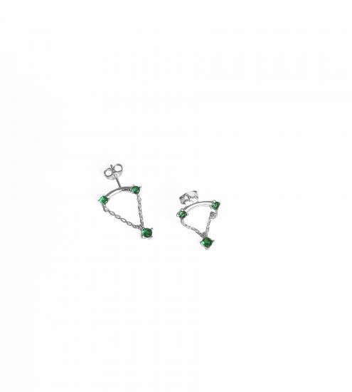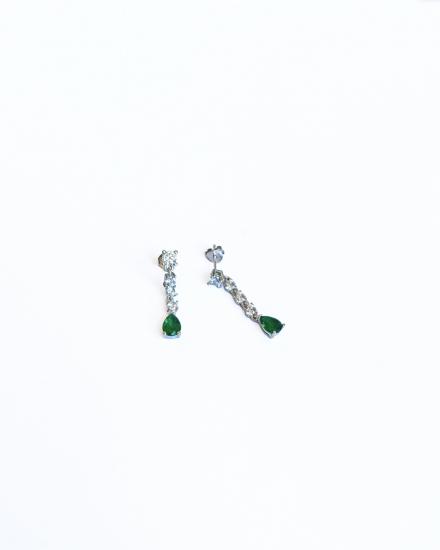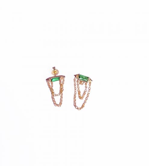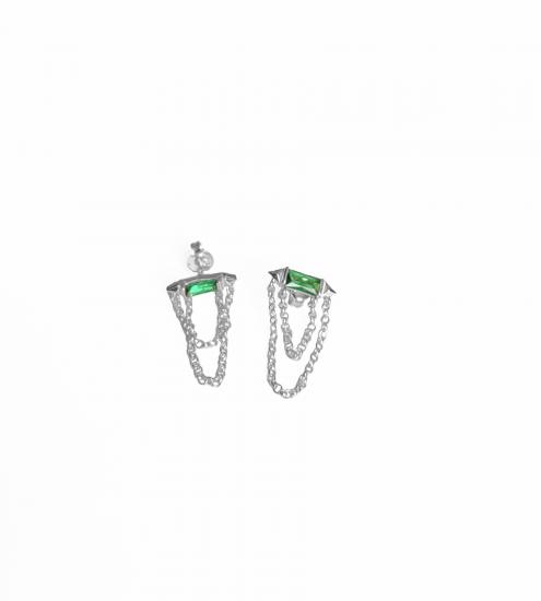 Çift Zincirli Baget Yeşil Taşlı Gümüş Küpe