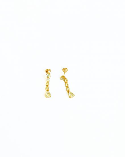 Şimşek Motifli Zincirli Gümüş Küpe - Gold Renk
