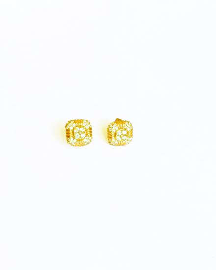 Beyaz Zirkon Tek Taş Gümüş Küpe - Gold Renk