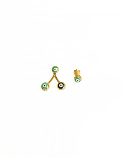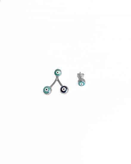 Renkli Mineli Nazar Boncuğu Gümüş Küpe