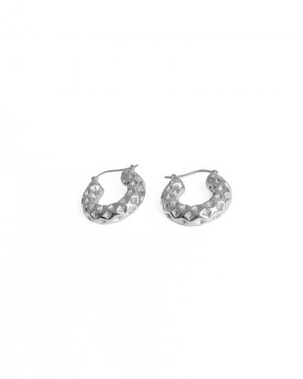 Tel İşçiliği Yuvarlak Gümüş Küpe - Rodyum Renk