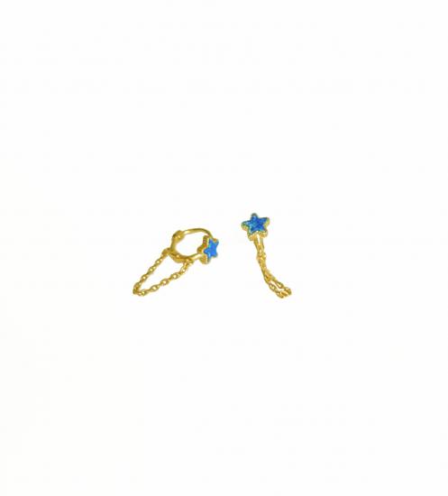 Turkuaz Taşlı Yıldız Gümüş Kıkırdak Küpesi