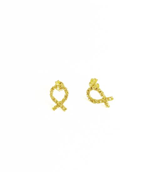 İnce Tel Kalp Desenli Gümüş Küpe - Gold Renk