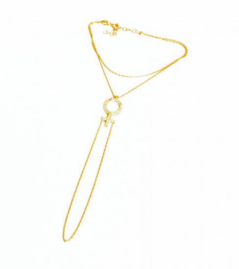 Tek Taşlı Gümüş Şahmeran Bileklik - Gold Renk