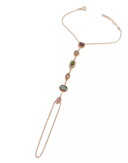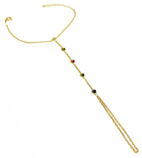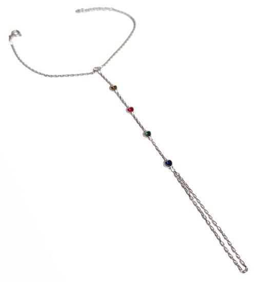 Renkli Taşlı Kalpli Gümüş Şahmeran Bileklik -...