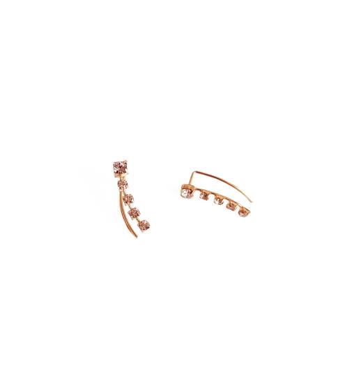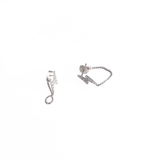 Şimşek Motifli Zincirli Gümüş Küpe - Gold Renk