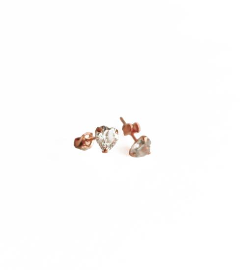 Beyaz Taşlı Kalp Desenli Gümüş Küpe - Gold Renk