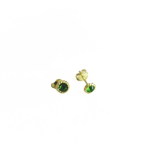 Zümrüt Tek Taş Gümüş Küpe - Gold Renk