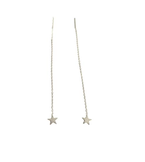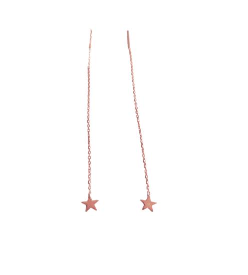 Taşsız Uzun Zincirli Yıldız Gümüş Küpe - Gold Renk