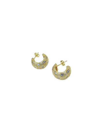Yarım Ay Desenli Gümüş Küpe, Baget Taşlarla -...