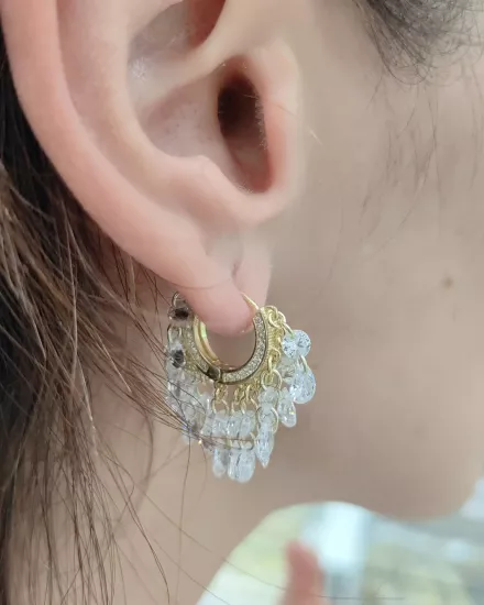 Çok Taşlı Sallantılı Gümüş Küpe | 925 Ayar Şık...
